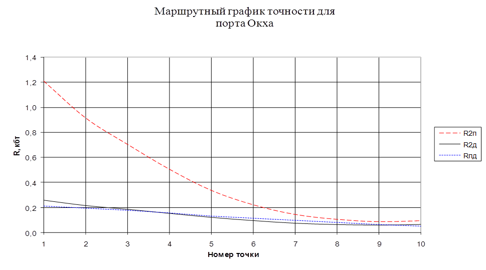 Также мы произвели расчет точности определения места судна с использованием маршрутного графика точности.